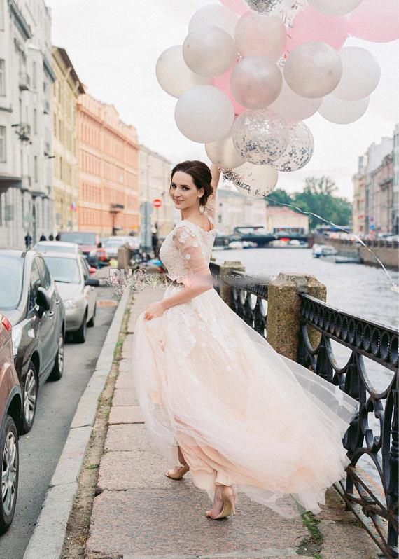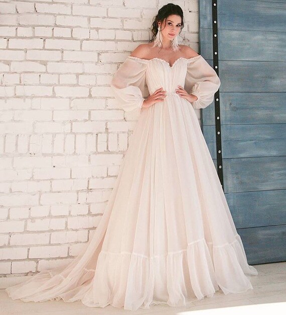 Alternative Wedding Dress Simple Wedding Dress Blush Wedding Dress Long Sleeve Wedding Dress Plus Size Wedding Dress Tulle Wedding Dress