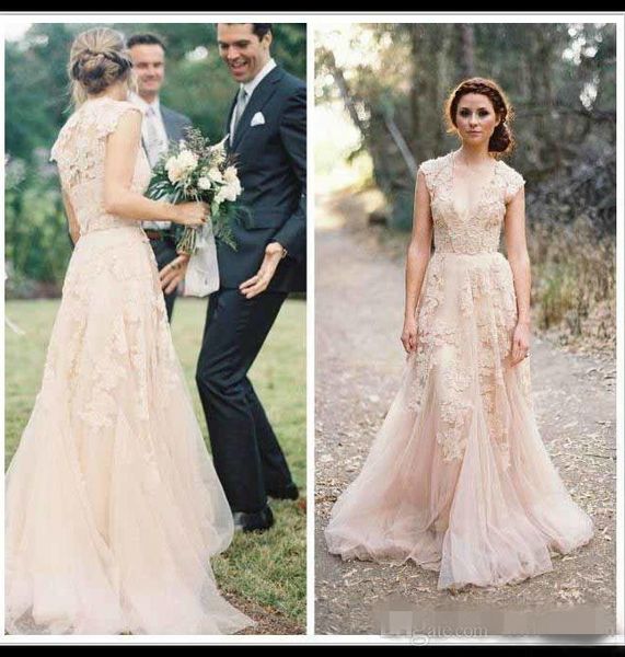 Blush Bohemian Beach Wedding Dress With Open V Back2018 Sexy Lace Wedding Dresses Simple Women Party Gowns Bridal Gowns A Line Brdial Dresses
