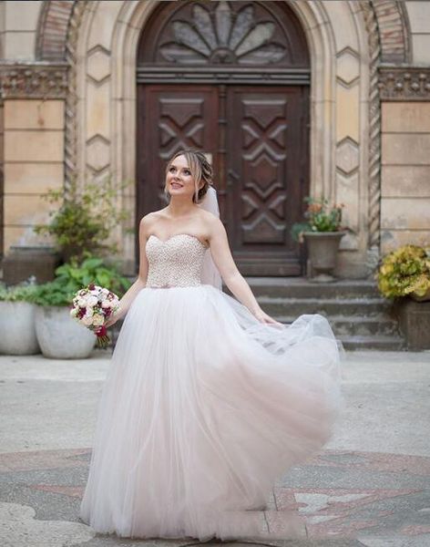 Discount Simple Blush Pink Wedding Dresses Cheap A Line Sweetheart 2019 Vestidos Plus Size Tulle Appliques Bridal Gowns Aline Wedding Dresses
