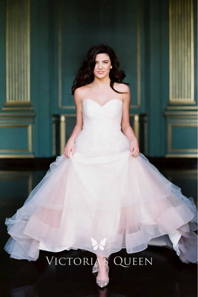 Fabulous Strapless Blush Tulle Flounced Wedding Dress
