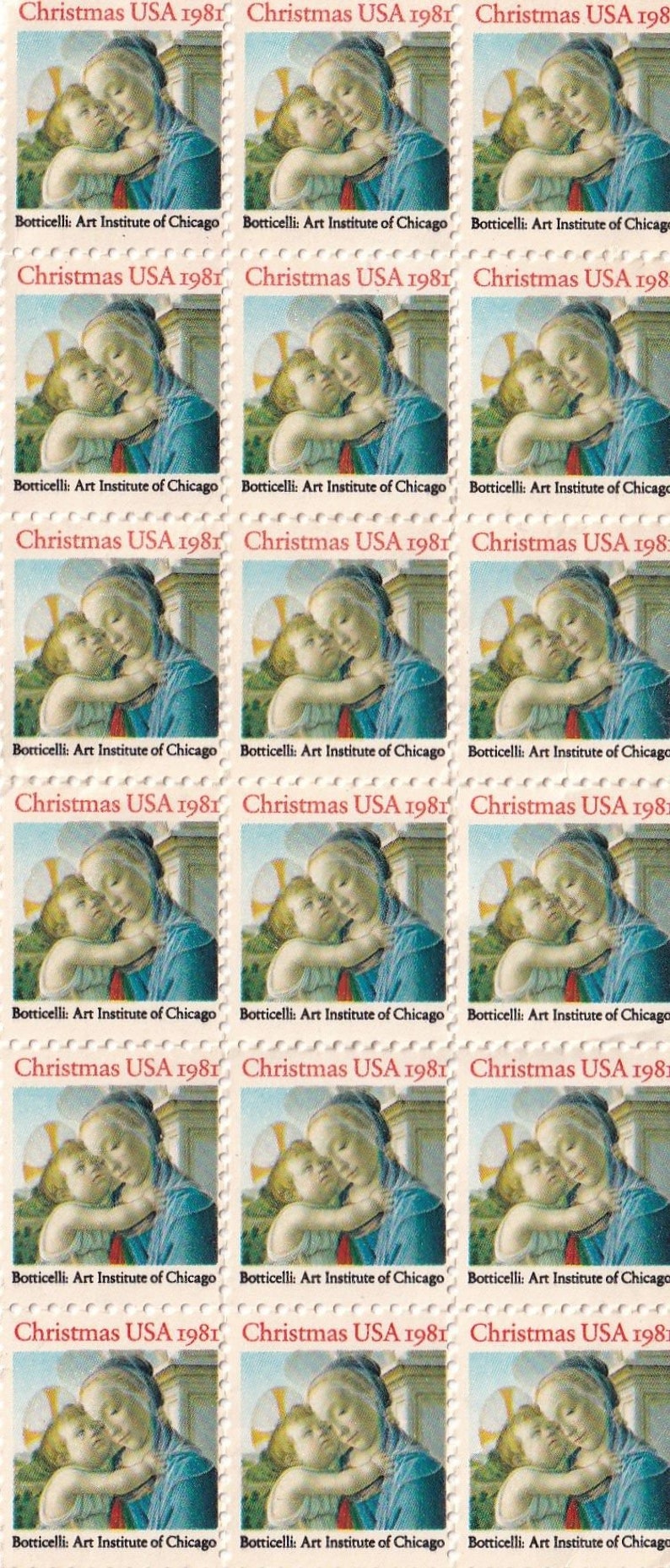 1981 Christmas Madonna Child Stamps Botticelli 20 Cent Vintage Us Postage Stamps Vintage Block Of 18 Mint Stamps Never Hinged