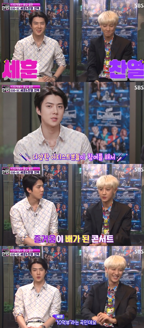 Chanyeol said, "I wanted to meet my fans with a concert. I was able to experience the actual performance hall with AR (Augmented Reality). In the meantime, Chanyeol and Sehun also cited 'beer' as a secret to enjoying on-tack performances.